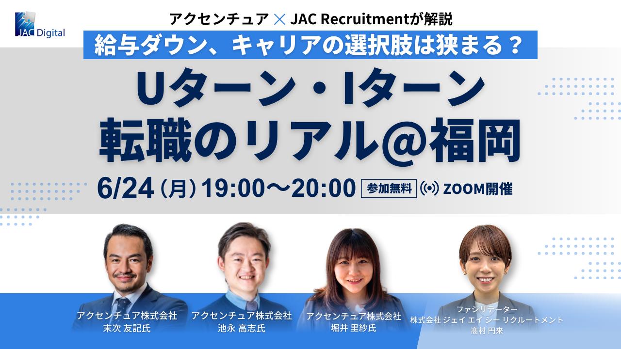 福岡での採用を活発化しているアクセンチュア株式会社と、現地でUターン・Iターン転職のご支援を行っている弊社コンサルタントが、転職市場動向やUターン・Iターン事情について解説。
