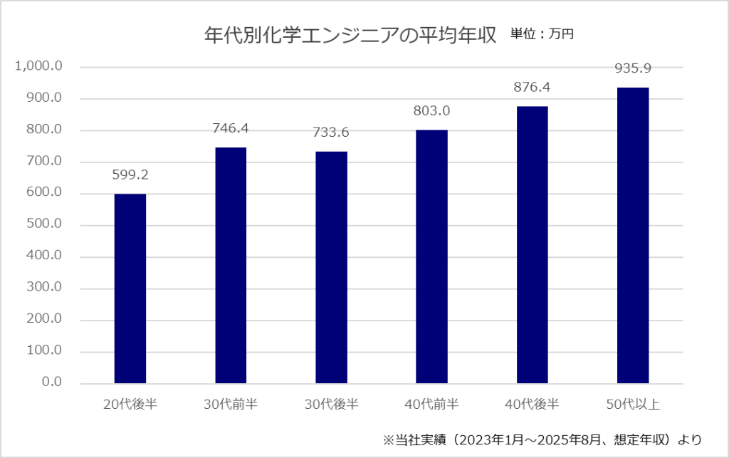 化学エンジニアとしての年収相場は、国内における技術系職種のなかでも高水準に位置しています。