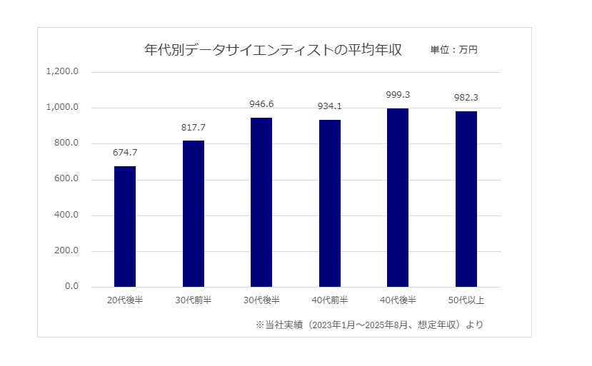AI・DXの進展にともない、データサイエンティストの市場ニーズは急速に高まっています。企業の意思決定を支える専門職として、年収水準は他職種と比べて高く、特にハイクラス層では1,000万円を超えるケースも珍しくありません。