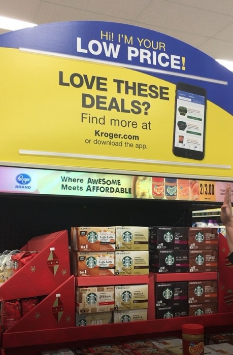 (クローガーのリテールメディア。棚板の部分がサイネージになっている)