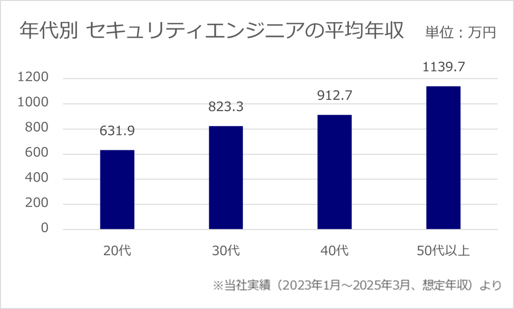 セキュリティエンジニアの年代別の想定平均年収は次のとおりです。