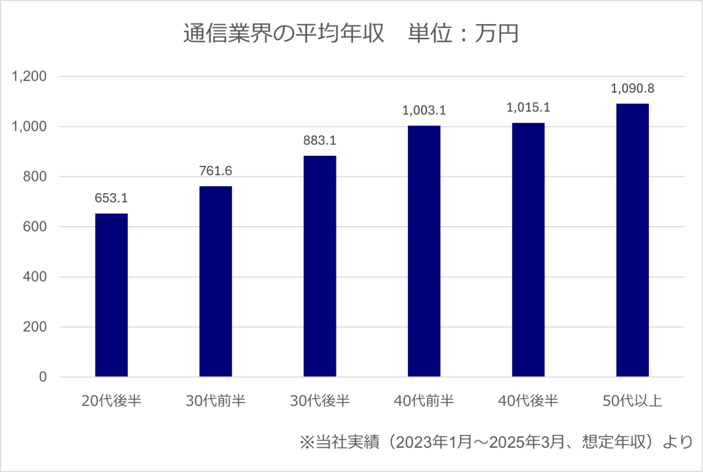 通信業界の年代別の平均年収は次のとおりです。