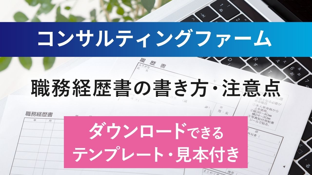 「コンサルティングファーム」の職務経歴書を作成する際に役立つサンプル・テンプレートをご用意。職種別の書き方ポイントも解説しています。