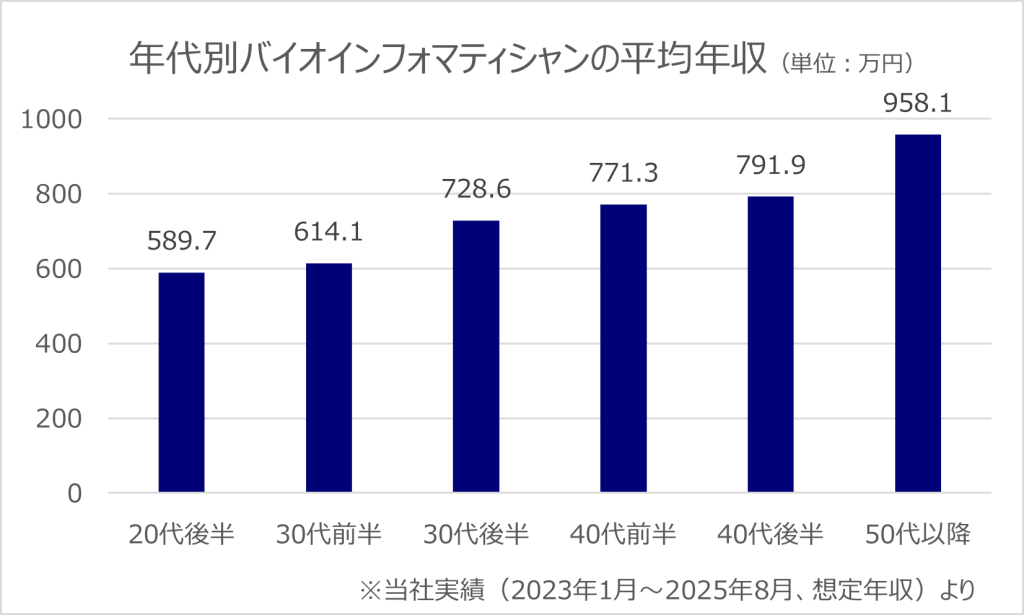 バイオインフォマティシャンの平均年収は725.0万円、年代別年収も解説