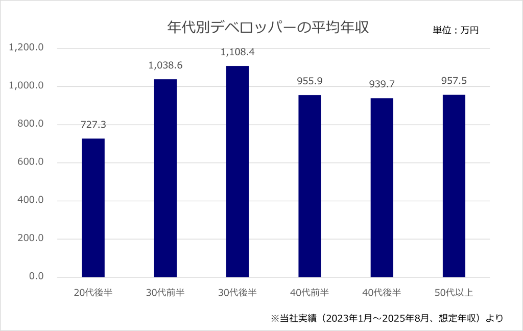 デベロッパーの平均年収は985.7万円、年代別年収も解説