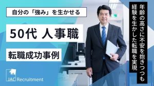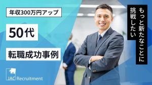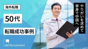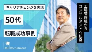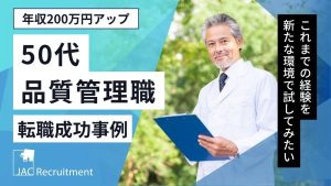 50代×転職事例に関する記事一覧 50代MR転職事例|外資系メーカーから日系メーカーへ Tさん(男性/50代前半) 業 種 外資系製薬メーカー 日系製薬メーカー 職種 MR MR 年 収 1,100万円 800万円 早期退職を機に転職活動。しかし、なかなか選考... 2025年4月18日 【50代経理の転職事例】幅広い経験を生かせる環境へ転職成功 Fさん(女性/50代前半) 業 種 ソフトウェア開発会社 教育サービス会社 職種 経理課長 経理課長(部長候補) 年 収 700万円 750万円 企業買収による環境変化を機... 2024年11月11日 PMSの転職成功事例|50代で初めての転職、2社の内定を獲得 Mさん(男性/50代) 業 種 国内製薬メーカー 国内製薬メーカー 職種 PMS(管理職) PMS(非管理職) 年 収 900万円 1100万円(残業代込) 企業の将来性... 2024年11月11日 製薬企業の品質管理職の転職成功事例|数十年にわたって培った力を新たな環境で発揮 Eさん(男性/50代後半) 業 種 日系医薬事業会社 日系大手グローバル企業 職種 品質管理(管理職) 品質管理(メンバー) 年 収 1000万円 1200万円 これまでの... 2024年10月17日 50代人事の転職事例|大手企業での経験を生かし、中小企業の人事部長に転職 Tさん(男性/50代半ば) 業 種 大手企業→ITベンチャー企業 インフラ系企業 職種 人事→人事部長 人事部長 年 収 800万円 900万円 「年齢の高さ」「転職歴の多... 2024年10月9日 法務の転職成功事例|海外法務の経験を生かし、M&Aも手がけられる企業へ転職 Kさん(女性/50代前半) 業 種 中小BtoBサービス企業 上場エレクトロニクス商社 職種 法務マネジャー 法務部門・専任部長 年 収 900万円 900万円 管理部門全... 2024年10月4日 【半導体業界の転職事例】「ポジションメイク」で志向に合う転職を実現 Tさん(男性/50代前半) 業 種 外資系メーカー 国内半導体メーカー 職種 経営企画 経営企画 年 収 2500万円 1800万円 コンサルタントとの面談で情報収集。1年... 2024年6月19日 概念を変えて、キャリアを有効にした転職をし、いっそうの活躍 Hさん(男性/50代前半) 業 種 大手ゼネコン 準大手ゼネコン 職 種 施工管理 管理職 大変でも技術者として誇れるキャリアを 大学を卒業し、若いころから今ほどの法整備が... 2024年4月18日 【建設業界の転職成功事例】メーカー系設計事務所の契約社員からゼネコンの部長クラスに O・Nさん(男性/50代前半) 業 種 メーカー系設計事務所 大手ゼネコン 職種 設計 設計部長 年 収 650万円 900万円 プロパー採用と同業務も待遇差が 前職では同... 2023年9月19日 【データエンジニアの転職事例】50代で大手メーカーの新規部門に転職し年収150万円アップ Sさん(男性/50代前半) 業 種 中堅サービス企業 大手メーカー 職種 アーキテクト データエンジニア 年 収 850万円 1000万円 しっかりとIT投資がなされる... 2023年9月8日 50代の転職成功事例|キャリアに物足りなさ、年収300万円アップ転職に成功 S.O.さん(男性/50代前半) 業 種 産業用ヒーターの総合メーカー 半導体製造装置事業会社 職 種 生産品質管理 課長職 環境安全衛生 課長職 年 収 800万円 11... 2023年8月10日 SDGsの転職成功事例|事業部門の縮小をきっかけに、サステナビリティベンチャーへ Kさん(男性/50代後半) 業 種 大手外資系化学メーカー ベンチャー企業 職種 研究開発 開発部門シニアマネジャー 年 収 1500万円 900万円※後に昇格し110... 2023年6月5日 女性管理職の転職成功事例|男性社会の企業へ女性活躍のロールモデルとして転職 Yさん(女性/50代前半) 業 種 大手メーカー 大手メーカー 職種 管理部門の課長職 管理部門の部長職 年 収 1,100万円 1,500万円 50代を迎え、先が見えてき... 2023年5月8日 50代の転職成功事例|企業の成長フェーズを支えたい、上場企業のCFOに転職 Sさん(男性/50代前半) 業 種 上場企業 上場企業 職種 CFO CFO 年 収 2,000万円前後 1,500万円前後 成長の可能性がある企業で、経験・スキルを生かし... 2023年5月8日 50代の転職成功事例|海外現地法人トップとして、パーパスに共鳴したセカンドキャリアへ Mさん(男性/50代前半) 業 種 大手機器メーカー ニッチトップ機械メーカー 職種 北米法人の経営ポジション 欧州法人のトップ 年 収 1,500万円前後 1,500万円... 2023年4月28日 創薬の転職成功事例|海外からの転職活動、良いキャリアの転機に Aさん(男性/50代前半) 業 種 大手CDMO海外法人 副社長クラス 大手製薬会社 職種 – 創薬戦略部長 年 収 2000万円 1700万円 JACの所有す... 2022年6月15日 建築業界の転職成功事例|59歳で初めての転職活動、新しい環境で活躍したい S・Kさん(男性/50代後半) 業 種 大手建設会社 コンサルティング会社 職 種 品質管理 設計業務 年 収 非公開 非公開 もう一度第一線での活躍を目指して 新卒で入社... 2022年6月10日 薬事申請の転職成功事例|裁量権を求め、スペシャリティファーマの薬事ヘッドへ Yさん(男性/50代前半) 業 種 外資系メガファーマ 外資系スペシャリティファーマ 職種 薬事申請マネージャー 薬事ヘッド 年 収 1500万円 1700万円 新しい環境... 2022年6月9日 管理職の転職成功事例|もう一度小さな組織から、地方のスタートアップITベンチャーへ Sさん(男性/50